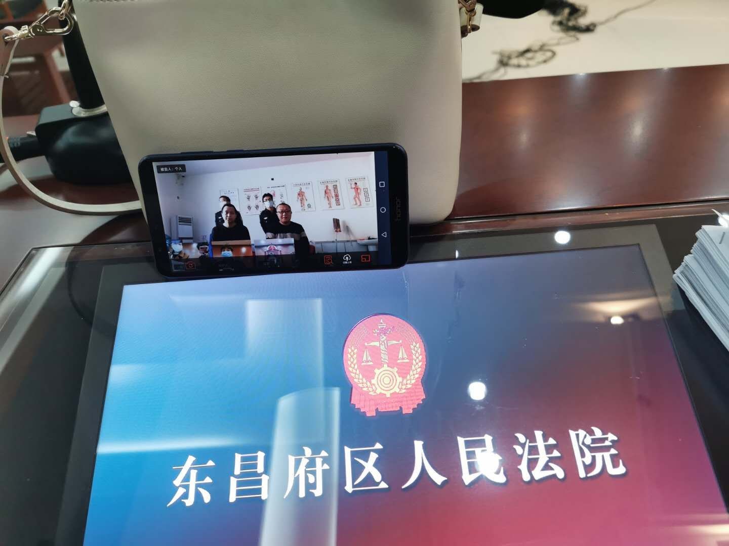 “你好,我们是东昌府区人民法院法官,考虑到疫情的影响,当事人不便到庭参与诉讼,你作为XX的代理人,现征求你的意见,是否同意远程互联网视屏开庭?”法院首先电话征求双方代理人的意见,在征得双方代理人同意后,法官助理开始不厌其烦的在微信上讲解网络庭审软件的安装及使用方法,并进行庭前测试,以保证庭审的顺利进行。